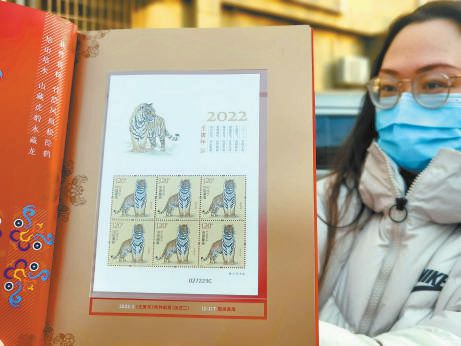 虎年生肖郵票一套兩枚,分別為國運(yùn)昌隆、虎蘊(yùn)吉祥。本報(bào)記者 吳鏑攝