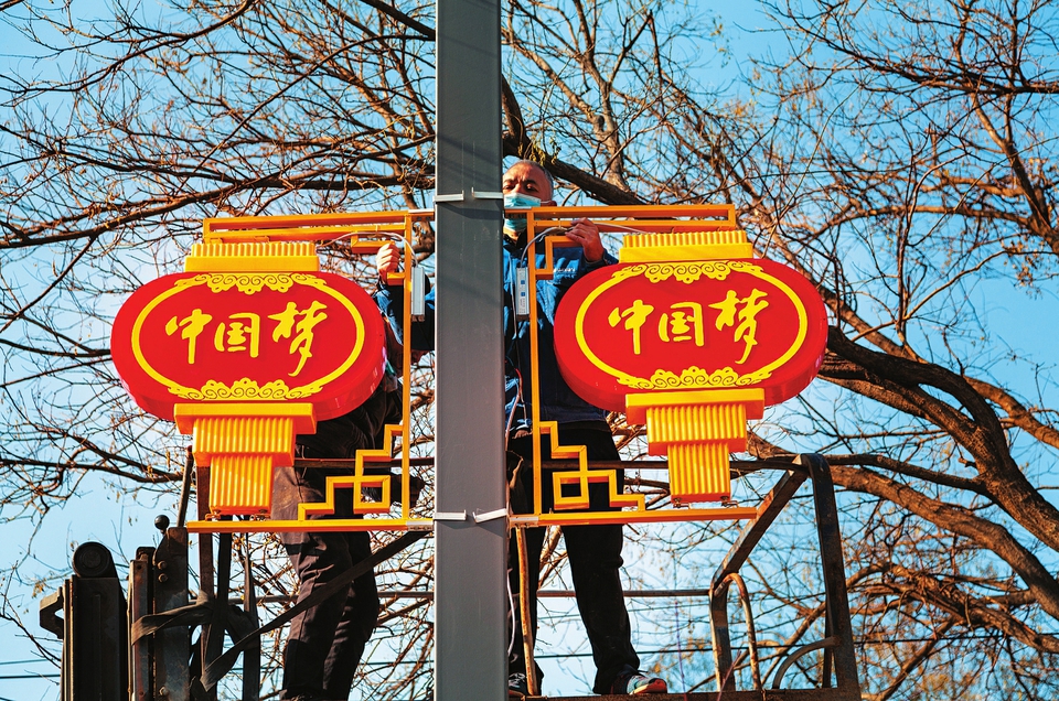 1月11日,工作人員在運(yùn)城市鹽湖區(qū)紅旗街上安裝花燈。臨近春節(jié),運(yùn)城市城市管理局組織人力在市區(qū)主要街道裝置迎新花燈,花燈有燈籠、中國結(jié)、鞭炮等多種造型,扮靚了城市,也營造出歡樂、祥和、喜慶的節(jié)日氛圍。(茹雅攝)