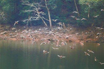 生態(tài)環(huán)境部南京環(huán)境科學(xué)研究所鳥類專家崔鵬研究員介紹,鴛鴦對棲息地生態(tài)環(huán)境要求極高,是濕地及河流湖泊生態(tài)系統(tǒng)環(huán)境質(zhì)量評價的重要指示物種,此次拍攝到大規(guī)模野生鴛鴦種群在四明山區(qū)域越冬,表明這里優(yōu)良的自然條件為鴛鴦等鳥類生存繁衍提供了豐富的食物資源和良好的棲息環(huán)境。