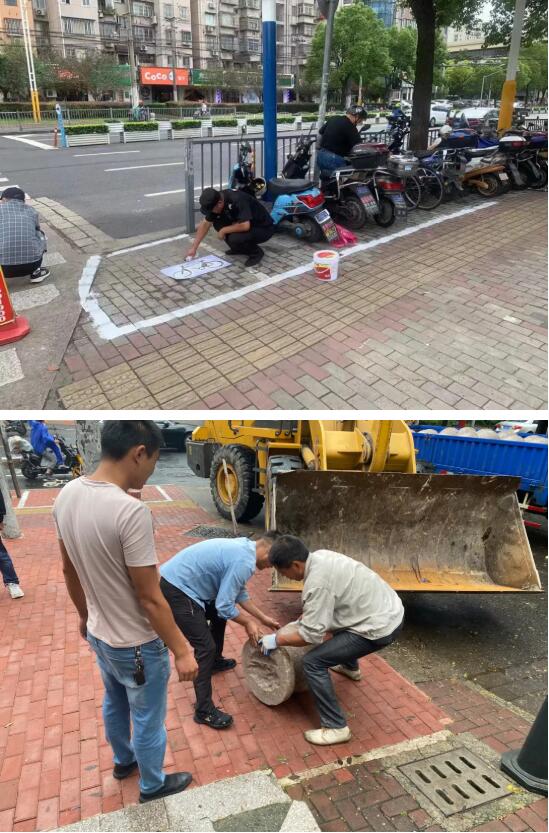 針對機(jī)動車亂停放的問題,聯(lián)合整治組挨家挨戶對沿街商鋪進(jìn)行宣傳告知,執(zhí)法部門對上街沿占道停放的機(jī)動車先行驅(qū)離清場,施工隊伍緊隨其后,補齊道路隔離欄、路口隔離樁和隔離石墩等物理隔離設(shè)施,壓縮違停空間。