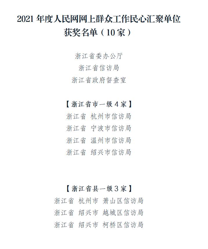 浙江省“2021年度人民網(wǎng)網(wǎng)上群眾工作民心匯聚單位”出爐