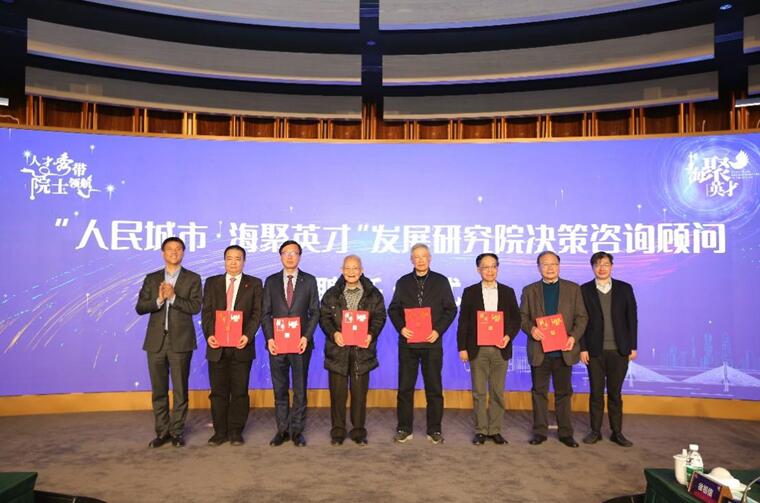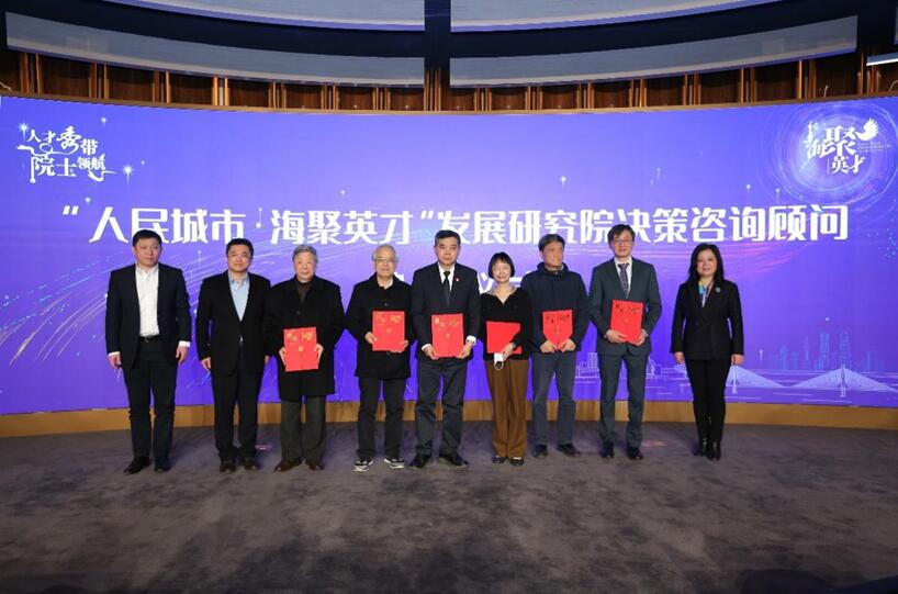 會上,人民城市海聚英才發(fā)展研究院舉行了決策咨詢顧問聘任儀式。市委組織部人才處處長譚樸珍、楊浦區(qū)委書記謝堅(jiān)鋼為金力、陳杰、汪品先、莊松林、黃崇祺、褚君浩院士頒發(fā)聘書;楊浦區(qū)人大常委會主任程繡明、區(qū)委副書記周海鷹為林元培、穆穆、常青、李兆申、徐祖信、李俊院士頒發(fā)聘書。