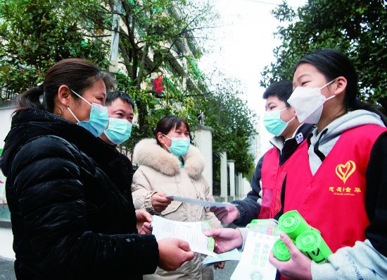 1月23日,在金華婺城區(qū)城西街道河盤橋社區(qū),租住在老肉聯(lián)宿舍等地的外來務工人員子女,趁著放寒假當起垃圾分類宣傳員,給河盤橋社區(qū)居民分發(fā)宣傳冊,講解《金華市生活垃圾分類管理條例》和“兩定四分”投放規(guī)定,協(xié)助社區(qū)向居民贈送垃圾袋。(時寬兵)