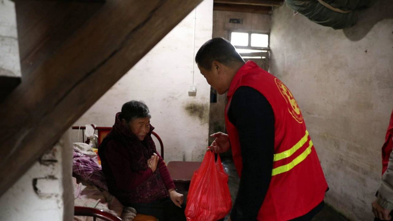 搗年糕的老師傅還特地制作了一批長條年糕,晾干后裝入袋子,送給村里60歲以上的老人。比起小孩,老人們更注重的是過年搗年糕、吃年糕的傳統(tǒng)習(xí)俗。