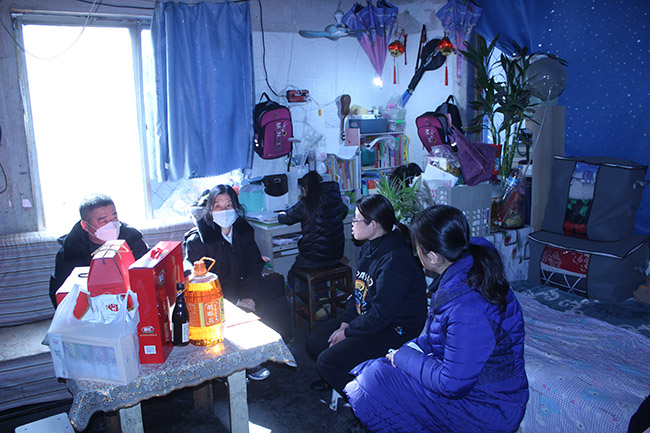 2022年1月24日,年關將至,氣溫驟降。濟南市中區(qū)人民法院少審庭的法官們在李江庭長的帶領下,踩著厚厚的積雪,提著滿滿的春節(jié)年貨和生活、學習用品,來到轄區(qū)內一間不足20平方米的簡易出租房內,看望了從大山深處來濟南生活的秦女士(化名)和她的三個女兒。 6年里的每個春節(jié)前夕,他們都會來看望這個因“案”結緣,心中時常牽掛的小姐妹家。