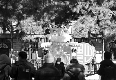 東北虎“萌萌”作為市屬公園的新春生肖吉祥物,在北京動物園南門迎客