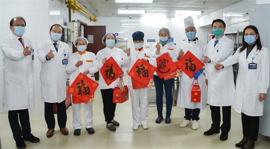 “過年食堂人手少,我國慶回去過了,春節(jié)就不回去了。醫(yī)院在節(jié)前還特意來關心我們,很溫暖!開心的呀!” 朱阿姨在醫(yī)院食堂已經工作了15年了,已經連著好些年沒回家過春節(jié)了,她把家安在了無錫,像他(她)們這樣一線的外包服務人員還有很多,勤懇工作在普通而平凡的崗位上,為胸科醫(yī)院的發(fā)展貢獻著光和熱。