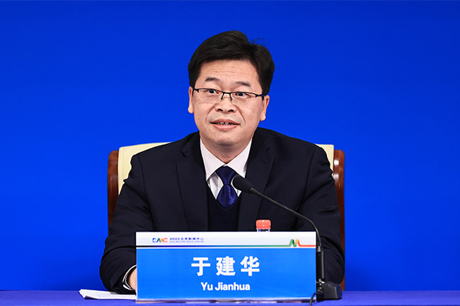 北京市生態(tài)環(huán)境局黨組成員、副局長、新聞發(fā)言人于建華介紹北京生態(tài)文明建設工作的整體情況。2022北京新聞中心供圖
