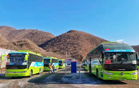 服務(wù)于北京冬奧會(huì)延慶賽區(qū)的氫燃料電池客車(chē)。福田汽車(chē)供圖