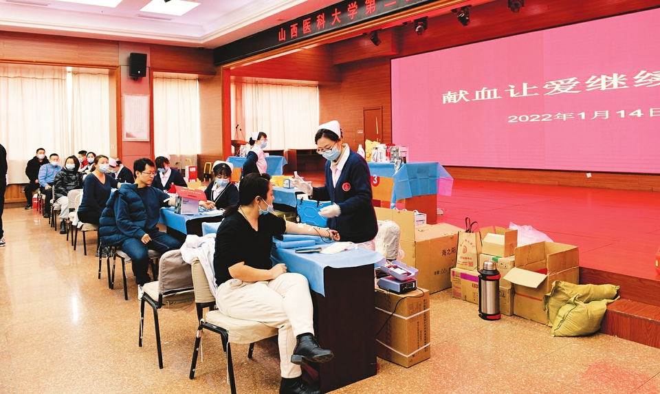 近日,山西醫(yī)科大學(xué)第二醫(yī)院一年一次的義務(wù)獻(xiàn)血“獻(xiàn)血讓愛繼續(xù)跳動(dòng)”公益活動(dòng)在該院影像樓進(jìn)行,醫(yī)務(wù)人員、職能部門和后勤工作人員共264人參與。大家依次填表、體檢、化驗(yàn)、采血,積極獻(xiàn)出一份愛心,以實(shí)際行動(dòng)踐行對生命的關(guān)愛,體現(xiàn)了強(qiáng)烈的社會責(zé)任感。(周慧芳 孟亮圖/文)