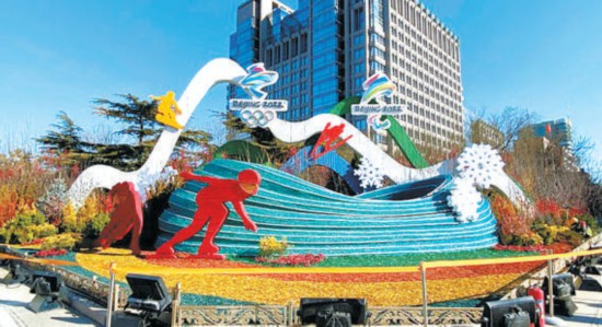 “綠色冬奧”主題花壇將運(yùn)動和自然融為一體。