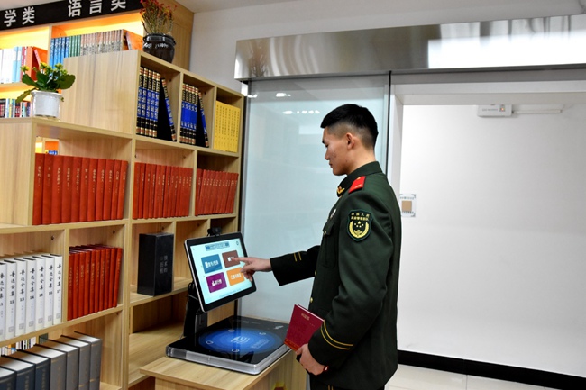 該支隊(duì)強(qiáng)軍書屋設(shè)有傳統(tǒng)閱讀區(qū),讀書交流區(qū),管理服務(wù)區(qū)和電子閱讀區(qū)四大區(qū)域,將情景模擬、視頻教學(xué)、電子閱讀等融為一體,創(chuàng)造了互聯(lián)網(wǎng)式閱讀模式。