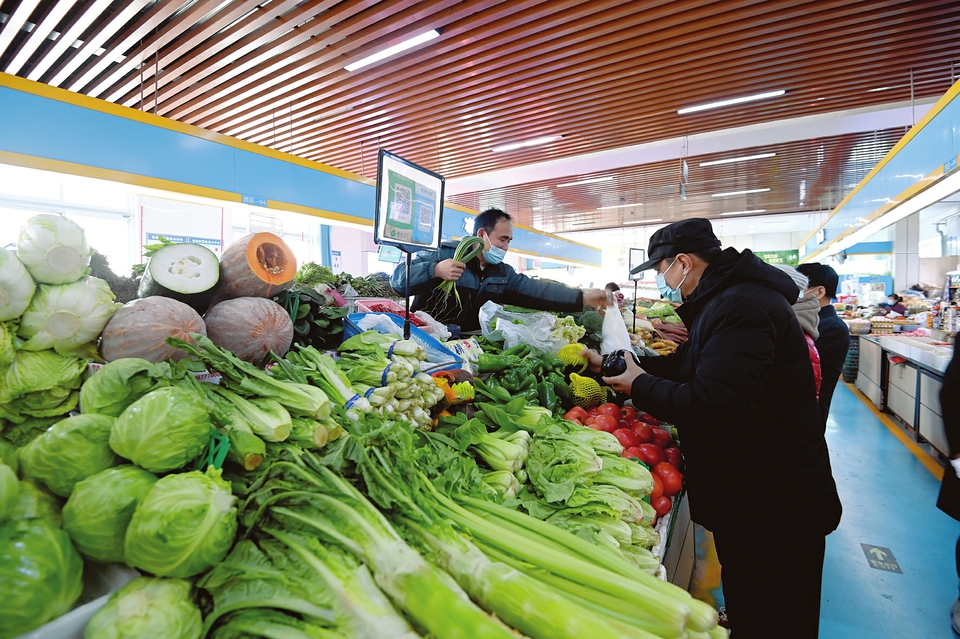 3月2日,太原市迎澤區(qū)惠民市場內(nèi),市民正在購買蔬菜。據(jù)了解,該市場嚴(yán)格執(zhí)行疫情防控措施,目前市場內(nèi)菜價平穩(wěn)、貨源充足,有效保障轄區(qū)居民的生活需求。(記者阮洋攝)
