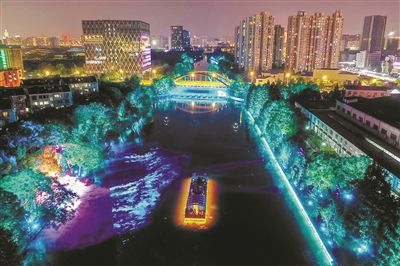上塘古運(yùn)河景區(qū)《如夢上塘》夜游項(xiàng)目。余文華攝