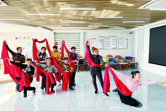 3月10日,金華開發(fā)區(qū)江南街道南苑社區(qū)新時代文明實踐站一樓大廳,南苑社區(qū)藝術團“幸福里”舞蹈隊的阿姨正在排練舞蹈。今年初,南苑社區(qū)新時代文明實踐站重新啟用,老年人可以在這里看書、聽戲……精神文化生活豐富多彩。(時寬兵)