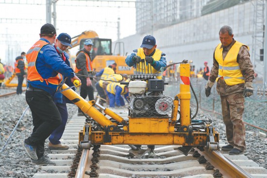 昨天上午,豐臺站改建工程計(jì)算機(jī)聯(lián)鎖封鎖施工、撥線施工開始,七百余名施工人員同時(shí)作業(yè)保障工程順利完成。本報(bào)記者 安旭東攝