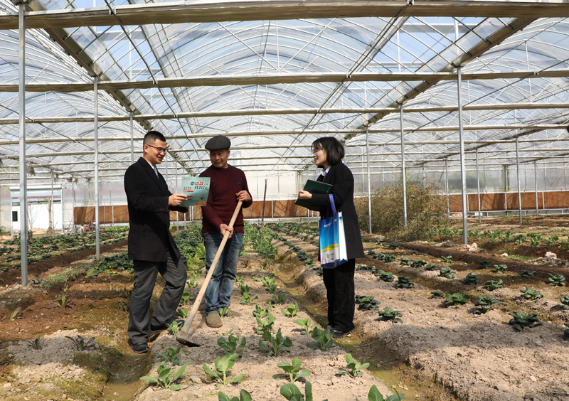 鄉(xiāng)村振興黨員先鋒隊(duì)隊(duì)員詢問(wèn)農(nóng)業(yè)生產(chǎn)經(jīng)營(yíng)主體春耕備耕需求。農(nóng)行浙江省分行供圖