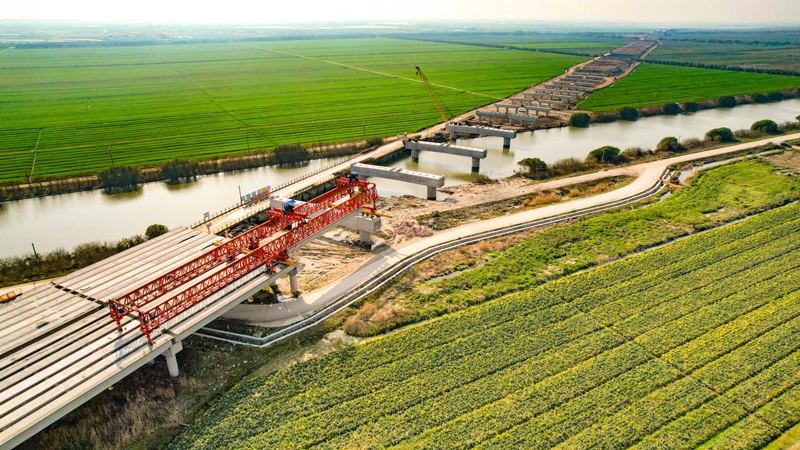 杭甬復(fù)線寧波一期項目濱海高架特大橋施工現(xiàn)場。浙交建設(shè)公司供圖