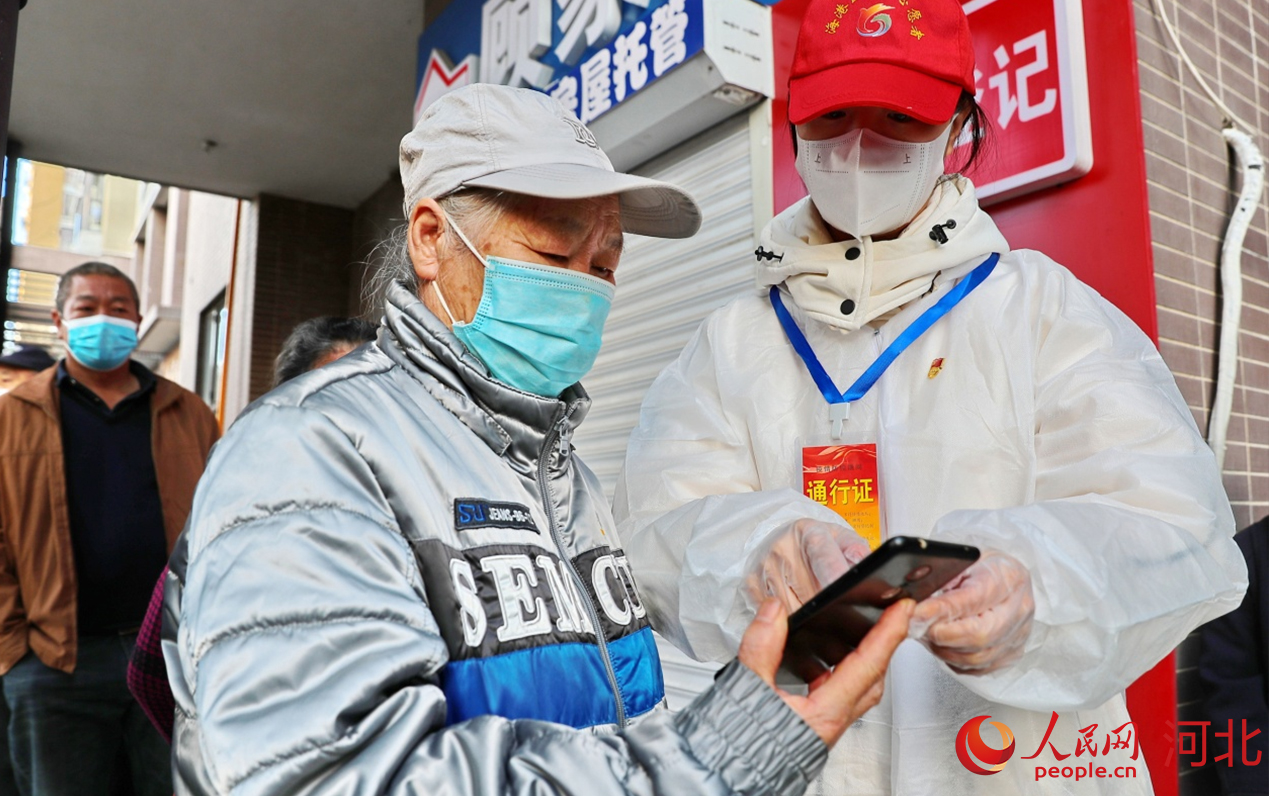 人民網(wǎng)石家莊3月27日電 “打開電子健康碼。”“保持好1米距離?!薄?月25日上午9點,在河北秦皇島市海港區(qū)森林逸城小區(qū),秦皇島市委組織部黨員先鋒隊隊員董菁正在組織居民有序排隊做核酸檢測,提醒大家準備好電子健康碼,耐心指導不熟悉操作流程的居民。