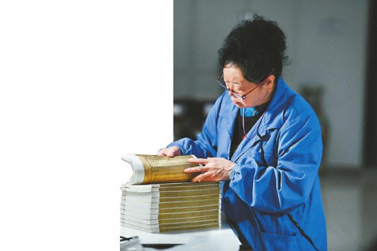 熟能生巧,修書破萬卷后,她和古籍建立了一種獨(dú)特的默契,“比如我現(xiàn)在做金鑲玉的鑲襯及折邊,200頁兩天就可以做完,書葉的厚薄、紙張潤度,靠著手摸就能感覺到。”