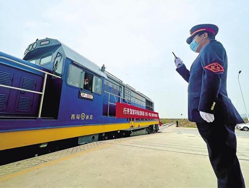 3月30日上午,寶雞東南亞國(guó)際班列發(fā)車儀式上,工作人員下達(dá)發(fā)車指令。本報(bào)記者 李宛嶸攝
