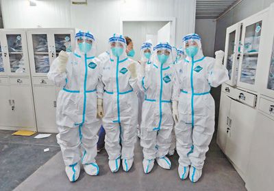 俗話說“三分治療,七分護(hù)理”,足見護(hù)理工作的重要。王麗萍所在的這支醫(yī)療隊(duì)伍有150人,其中護(hù)士有119人。每組護(hù)士14人,要服務(wù)600多名患者。盡管大多是無癥狀感染者,但護(hù)理工作依然不輕松。每天,護(hù)士們?nèi)司?萬多步,脫下防護(hù)用具時,都能看到滿身的汗水、紅腫的耳根和留下深深壓痕的鼻翼。“這是一場硬仗,我們做好了思想準(zhǔn)備。”王麗萍說。