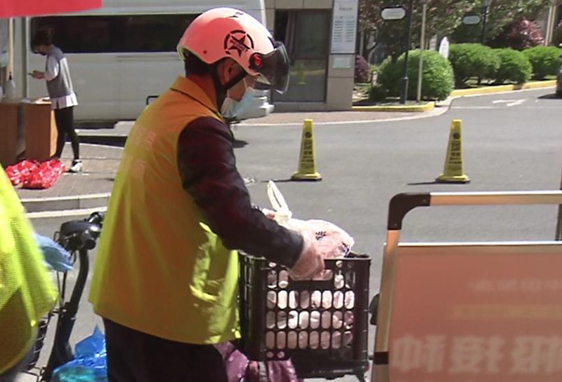 在玉麟名邸小區(qū),前一天晚上居民們通過居委訂購的蔬菜和肉類食品今天上午已經(jīng)抵達各暫存點位,陸續(xù)有居民接到通知前來取貨。除了蔬菜肉類食品,在昨天城橋鎮(zhèn)公布的生活物資保供指南中,還增設(shè)了米、油、調(diào)味料、衛(wèi)生用品等套餐,由各村居根據(jù)各自實際情況組織集中代購和分發(fā)?!靶^(qū)居民錯峰分時領(lǐng)取,開放式的老街小巷,我們安排每戶送上門?!倍帕柙平榻B。