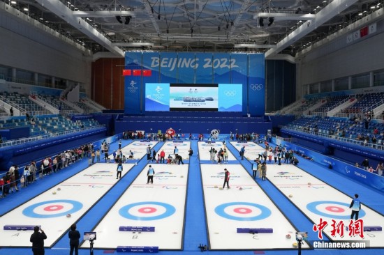 4月16日,北京,民眾在國(guó)家游泳中心體驗(yàn)冰壺運(yùn)動(dòng)。當(dāng)日,國(guó)家游泳中心重新面向公眾開放,并開啟冬奧文化大眾體驗(yàn)季,民眾可在冬奧會(huì)原有設(shè)施、燈光、大屏、景觀等環(huán)境下,感受冬奧和冰壺文化的氛圍。中新社記者 崔楠 攝