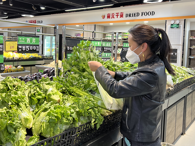 “和以往一樣,品種多、新鮮,想買什么都有?!?月20日,在山西省呂梁市石樓縣新天地超市里,糧油、肉類、蔬菜等各類商品一應俱全,家住附近的康阿姨經(jīng)常到這里購物。