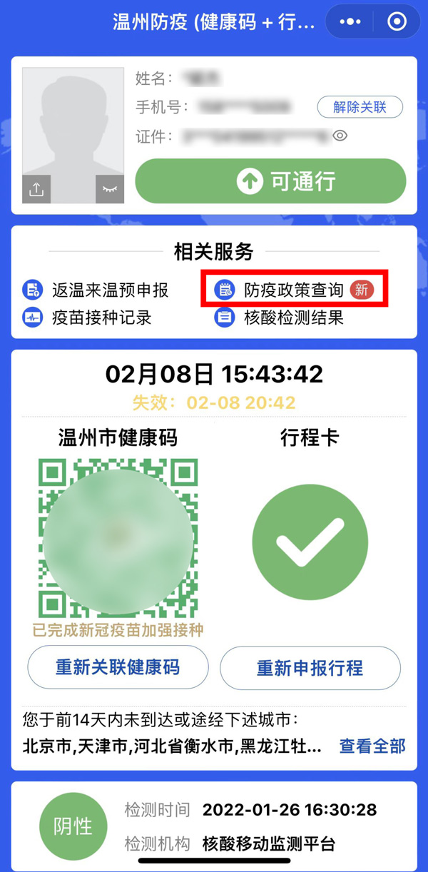 其實,在浙江省溫州市推出的溫州防疫碼小程序中,就已經(jīng)實現(xiàn)了健康碼與行程卡在同一界面顯示,還融合了返溫來溫預申報、防疫政策查詢、核酸檢測結(jié)果等相關(guān)服務(wù),受到市民的好評。