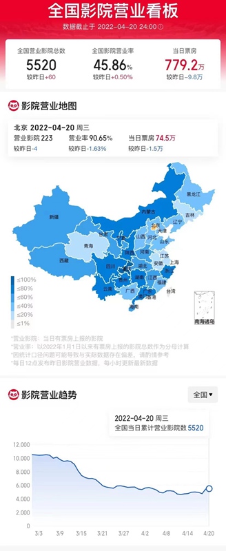 4月20日全國(guó)影院營(yíng)業(yè)數(shù)據(jù)。網(wǎng)絡(luò)截圖