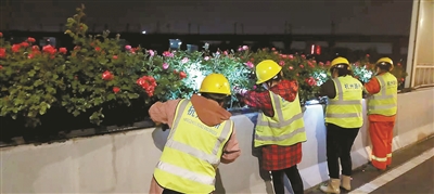 春季苗木生長迅速,水分需求量大,每天夜間22點到翌日凌晨2點,就是月季喝水的“黃金4小時”。為了確保月季“喝好水”,養(yǎng)護團隊根據天氣情況對供水時間進行加減微調,同時加大對滴管、滴劍等附屬設施檢修。