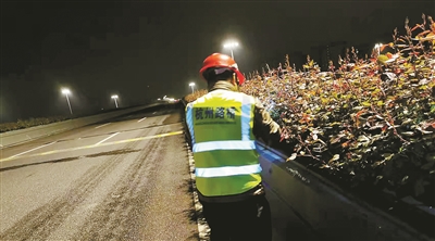 “結合常規(guī)巡查,新增加負責人、管理員、班組三級巡查模式,通過車巡看整體、人巡觀細節(jié),檢查市管高架綠化全域路線,分別做到每月、每半月、每兩天一次全覆蓋,對于高架主線和重點匝道做到每天巡查?!焙贾菔谐枪芫质姓行南嚓P負責人介紹,2022年的“高架花廊”巡查主要以綠化長勢、灌溉情況、病蟲害、排水設施滲漏等內容為主,對隱患問題第一時間發(fā)現,第一時間處理。