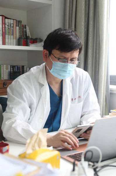 緊接著,張文宏和100余位專家視頻連線,會診各定點醫(yī)院的重癥患者。他在線聽到了好消息,“有一例危重型患者,兩次核酸陰性;還有3例基礎病重癥患者由原先的基礎病重癥轉為輕癥”……連線結束,他快速接受了大江東工作室的專訪,后面,他還有一場專家討論會要參加。