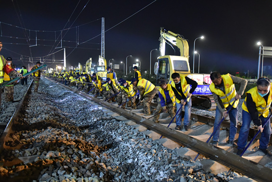 “22日20時40分至23日5時40分、24日22時至25日7時正式進行京唐鐵路與京哈鐵路上下行42號道岔整體橫移插入施工,并取得圓滿成功。”中國鐵路北京局集團有限公司所屬唐山工務(wù)段副段長王建介紹說,自3月15日以來,為嚴格落實沿線疫情防控政策,該段組織相關(guān)科室、車間20余名干部職工吃住在現(xiàn)場,對兩組道岔預(yù)鋪平臺搭設(shè)、預(yù)鋪組織、線下焊軌、探傷、標志標識油刷、放散、精調(diào)等進行全程技術(shù)指導(dǎo),全力確保岔位和平縱斷面上線零誤差。