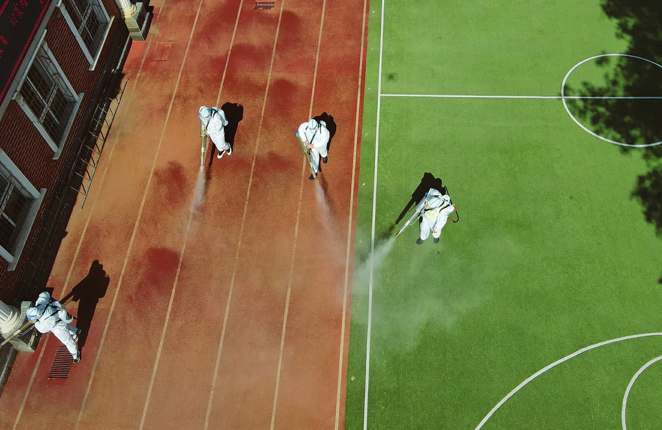 5月6日,為做好校園疫情防控工作,保障師生的身體健康與生命安全,創(chuàng)造良好、健康的生活學(xué)習(xí)環(huán)境,省城雙南小學(xué)邀請藍(lán)天救援隊(duì)走進(jìn)學(xué)校,對校園進(jìn)行全面消殺,為學(xué)生安全有序返校做好準(zhǔn)備。(記者王瑞瑞攝)