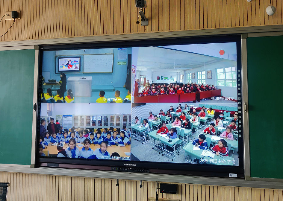 “同學(xué)們,我們今天學(xué)習(xí)《文房四寶》,請看大屏幕......”當(dāng)臨汾市第一小學(xué)三年級的陳老師話音剛落,同時在課的左權(quán)麻田中心學(xué)校、呂梁方山縣積翠小學(xué)、忻州市岢嵐縣桃園聲實驗小學(xué)的教室里就響起了一陣陣地驚嘆聲?!靶滦涂臻g”里,四個相距百公里的200多名在校師生正沉浸在“晉享云課堂”教學(xué)中。