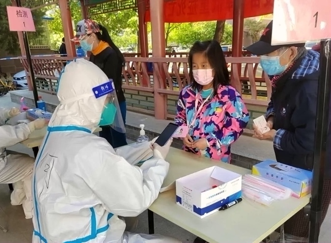 他叫何川,94年出生,來自石景山區(qū)生態(tài)環(huán)境局土壤生態(tài)環(huán)境科。自4月26日以來,他先后下沉到老山城市休閑公園停車場檢測點和老山西里小廣場臨時采樣點,承擔(dān)核酸檢測點位人員信息采集和現(xiàn)場秩序維護等工作,每天工作10余個小時。