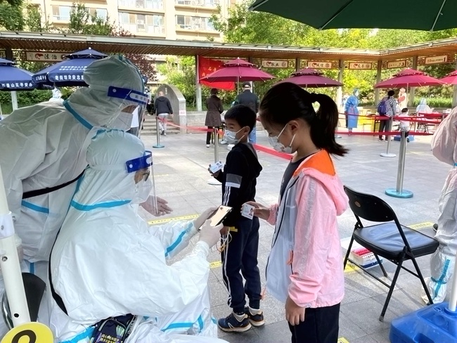 “讓我去封控區(qū),我年輕,身體好!”4月26日,紅廟北里小區(qū)部分區(qū)域?qū)嵤┓猓ü埽┛?,朝陽區(qū)八里莊街道社區(qū)衛(wèi)生服務(wù)中心護士劉彩麗主動請纓,就這樣,22歲的劉彩麗和其他4名同事承擔(dān)起5個單元門的核酸采樣任務(wù)。