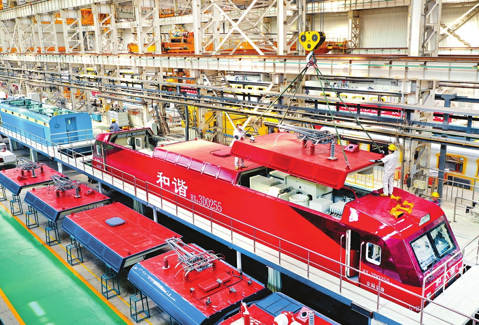 5月20日,在中車太原公司和諧型機(jī)車總組裝生產(chǎn)線,工人們正在吊裝電力機(jī)車頂蓋。今年以來,中車太原公司克服疫情對生產(chǎn)的影響,強(qiáng)化跟蹤工序進(jìn)度,全面排查整治安全質(zhì)量薄弱環(huán)節(jié),確保各個工序安全高效、工藝質(zhì)量可靠。目前,公司已實現(xiàn)電力機(jī)車檢修產(chǎn)品交直流并舉的重大跨越。(記者劉通攝)