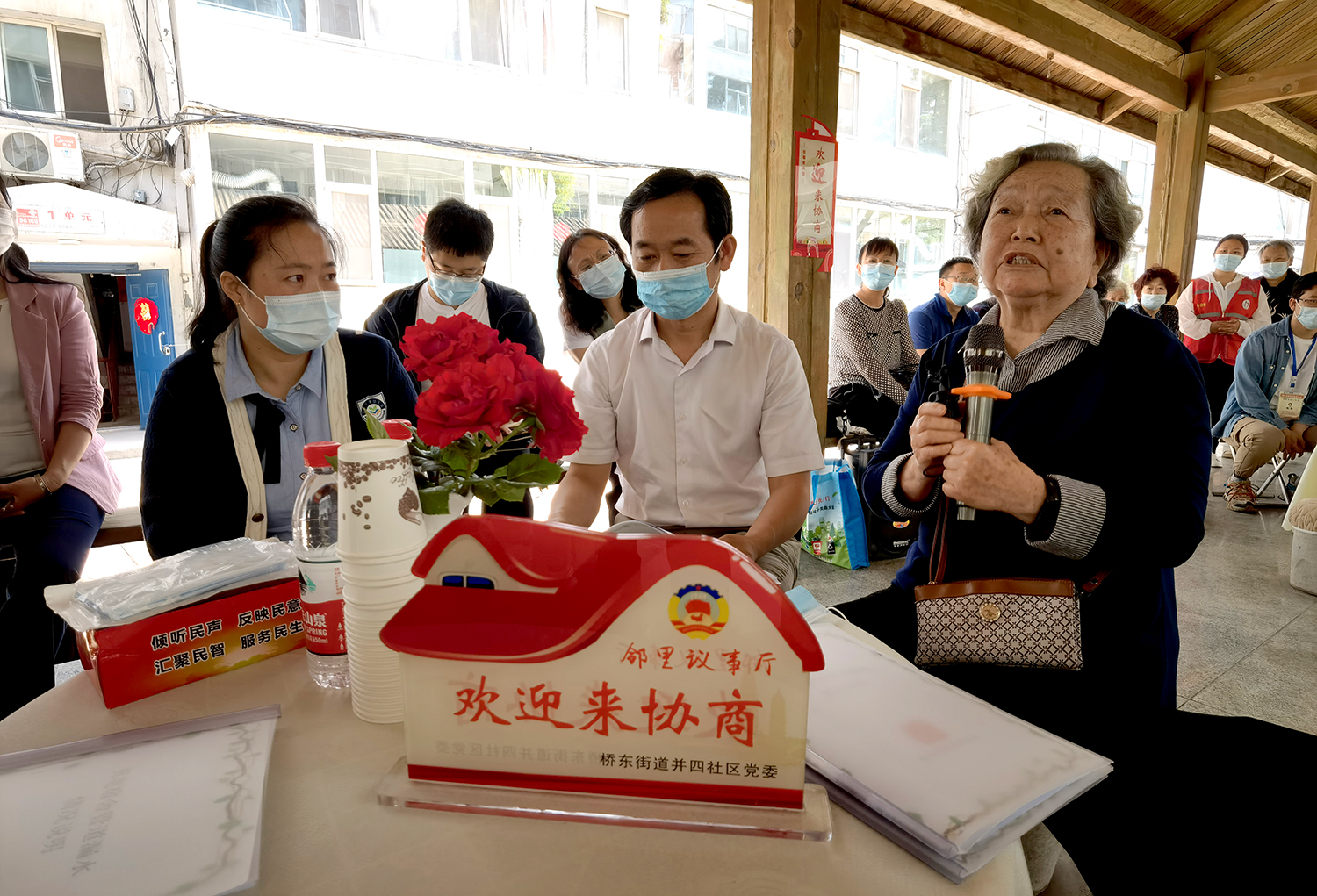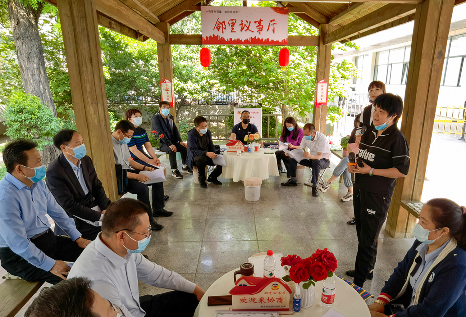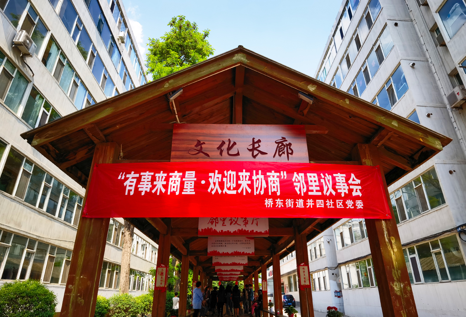 初夏。太原市迎澤區(qū)橋東街道并四社區(qū)新生里89號院,文化長廊里支起了三張“議事桌”。兩側(cè)長廊不夠坐,前排“見縫插針”擺上了小馬扎,來自街道社區(qū)、物業(yè)、居民和政協(xié)委員等各方面的代表圍坐在一起,“鄰里議事會”開場了。