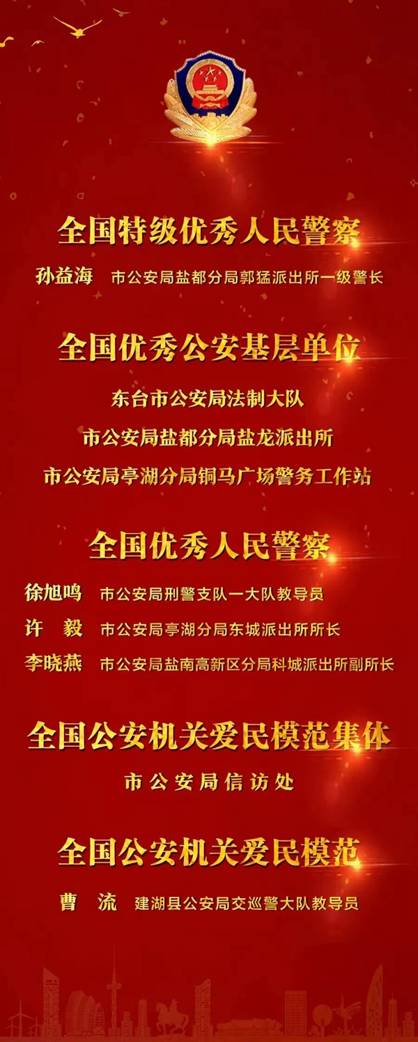 鹽城公安一批集體和個(gè)人獲全國公安系統(tǒng)表彰