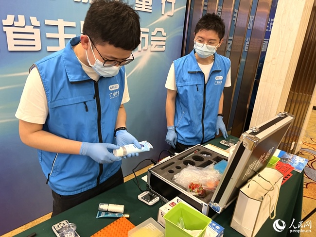活動現(xiàn)場對消費者點名的化妝品產品進行快速檢測。人民網(wǎng) 吳舟攝