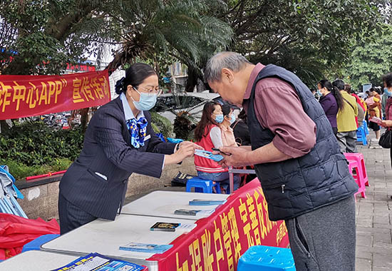 建行工作人員走進社區(qū)開展宣傳。鄧星攝