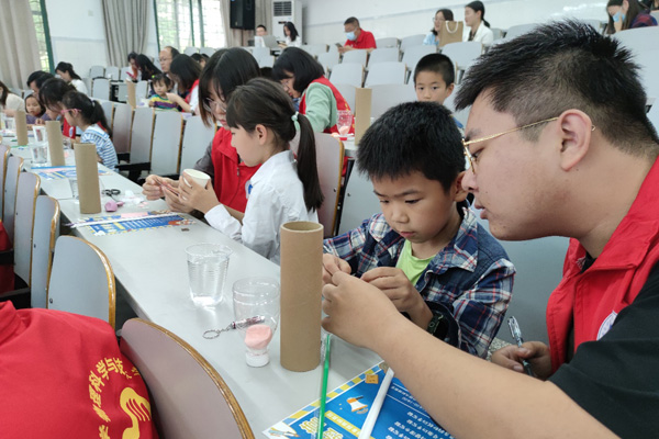 志愿者教孩子動(dòng)手做科普。西南大學(xué)供圖