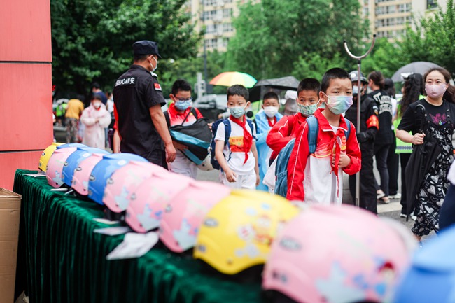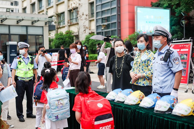 “出門著急了”“忘戴了”“天熱了,戴著麻煩”“不好意思,下次一定戴好頭盔”……5月25日清晨,西安高新交警聯(lián)合高新一小共同行動(dòng),開(kāi)展“一盔一帶”安全守護(hù)行動(dòng),在校門口教育、提醒騎行送孩子上學(xué)而未給孩子佩戴頭盔的家長(zhǎng)重視交通出行安全。活動(dòng)現(xiàn)場(chǎng),學(xué)校家委會(huì)還組織為沒(méi)有戴頭盔的孩子贈(zèng)送了頭盔。當(dāng)天,高新區(qū)30余所學(xué)校安全負(fù)責(zé)人全程觀摩了此次活動(dòng)。