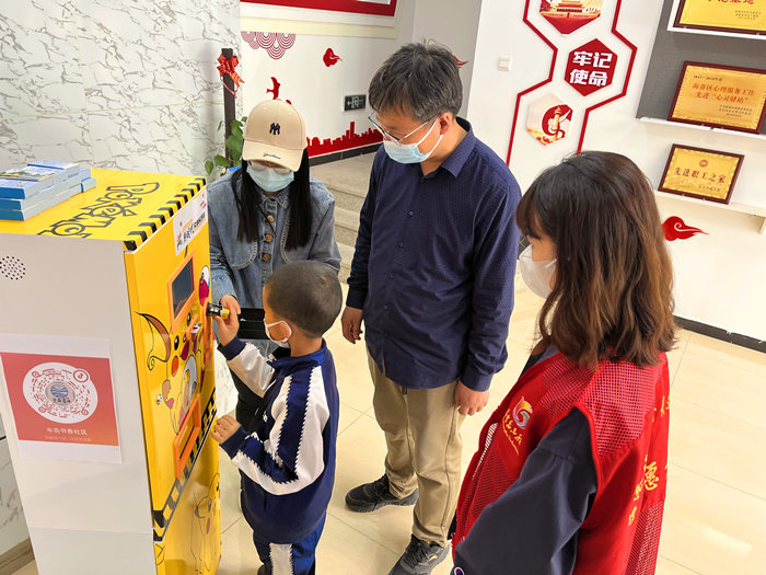 在半島書(shū)香社區(qū),居民通過(guò)智能電池回收器回收電池就可獲得文明積分。 受訪(fǎng)者供圖