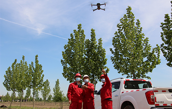 華北油田儲氣庫員工利用無人機巡查管線。 賈艷娜攝
