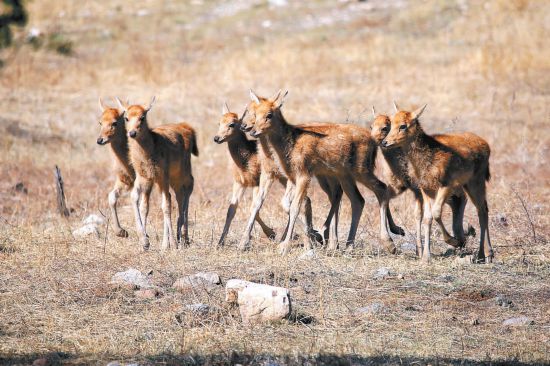 2019年,國(guó)家林草局、中國(guó)野生動(dòng)物保護(hù)協(xié)會(huì)啟動(dòng)實(shí)施麋鹿種群擴(kuò)散與擴(kuò)大放歸項(xiàng)目,旨在研究、尋找和選擇更多合適區(qū)域進(jìn)行野化放歸,爭(zhēng)取建立更多獨(dú)立的麋鹿野生種群。項(xiàng)目也有助于北京南海子和江蘇大豐兩大不同種源的麋鹿進(jìn)行遺傳基因的交流,提高麋鹿種群遺傳多樣性。