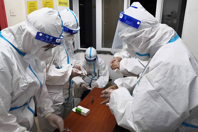 在永定鎮(zhèn)疫情封控區(qū),文旅人變身“大白”,無(wú)論是烈日炎炎還是深夜時(shí)分,他們24小時(shí)堅(jiān)守奮戰(zhàn)在封控小區(qū)抗疫第一線,面對(duì)疫情確診樓,全體領(lǐng)導(dǎo)干部輪流上陣,勇挑重?fù)?dān)。他們參與快遞消殺、物資配送、入戶核酸檢測(cè)、大數(shù)據(jù)流調(diào)、門(mén)磁安裝等各項(xiàng)工作,開(kāi)展“敲門(mén)行動(dòng)”,爭(zhēng)創(chuàng)“五大員”,爭(zhēng)當(dāng)物資配送“服務(wù)員”、核酸檢測(cè)“查驗(yàn)員”、數(shù)據(jù)排查“流調(diào)員”、夜間值守“保安員”、防疫前線“戰(zhàn)斗員”。截止到目前,門(mén)頭溝區(qū)文旅局共組織干部疫情下沉400余人次,下沉人員占全單位干部職工比重高達(dá)90%以上。